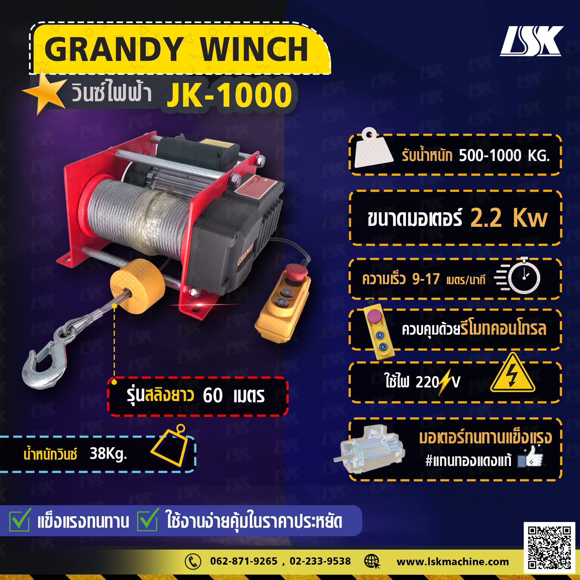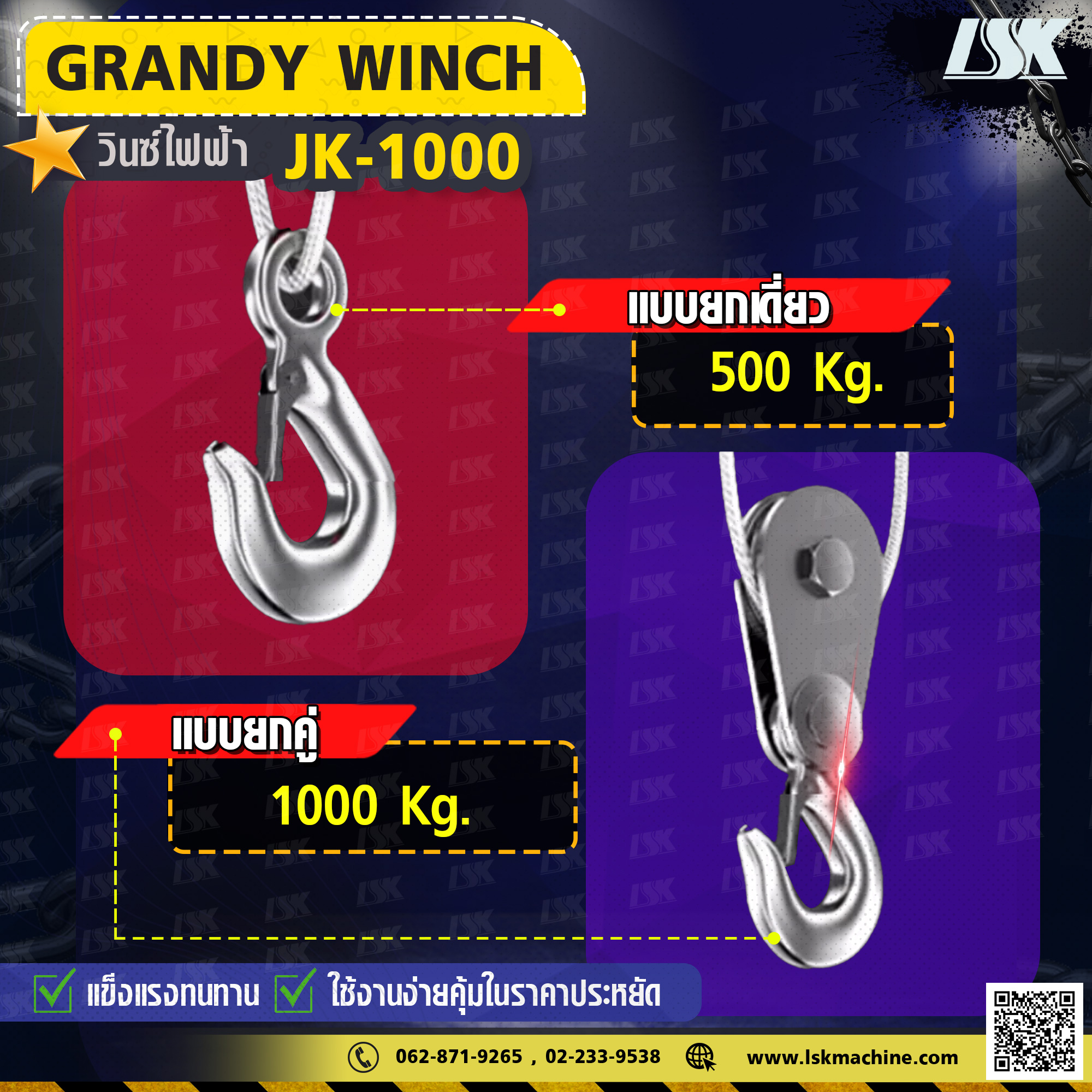 รายละเอียดสินค้ารอกกว้านสลิงไฟฟ้า Grandy รับน้ำหนัก 500-1000 KG ใช้ไฟ 220 V